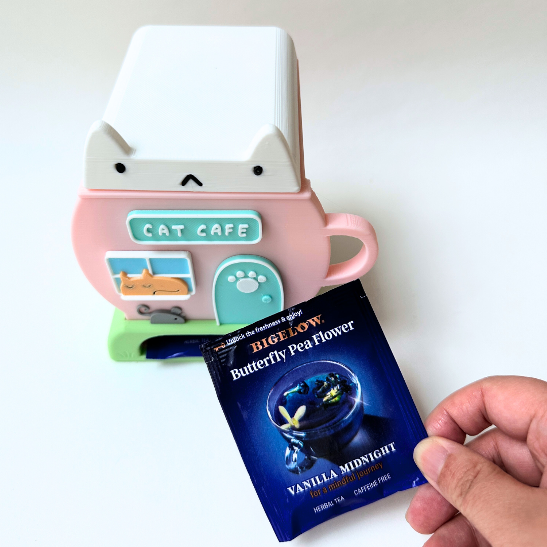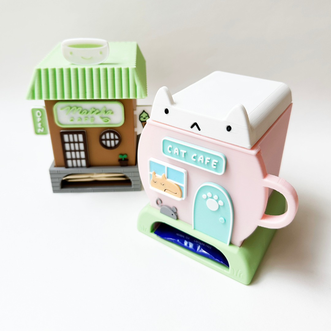 Need a cuter way to store your tea bags? How about a little cat cafe box? This adorable store front will keep all your teas in one spot. Teas are easy to grab from the bottom of the shop.