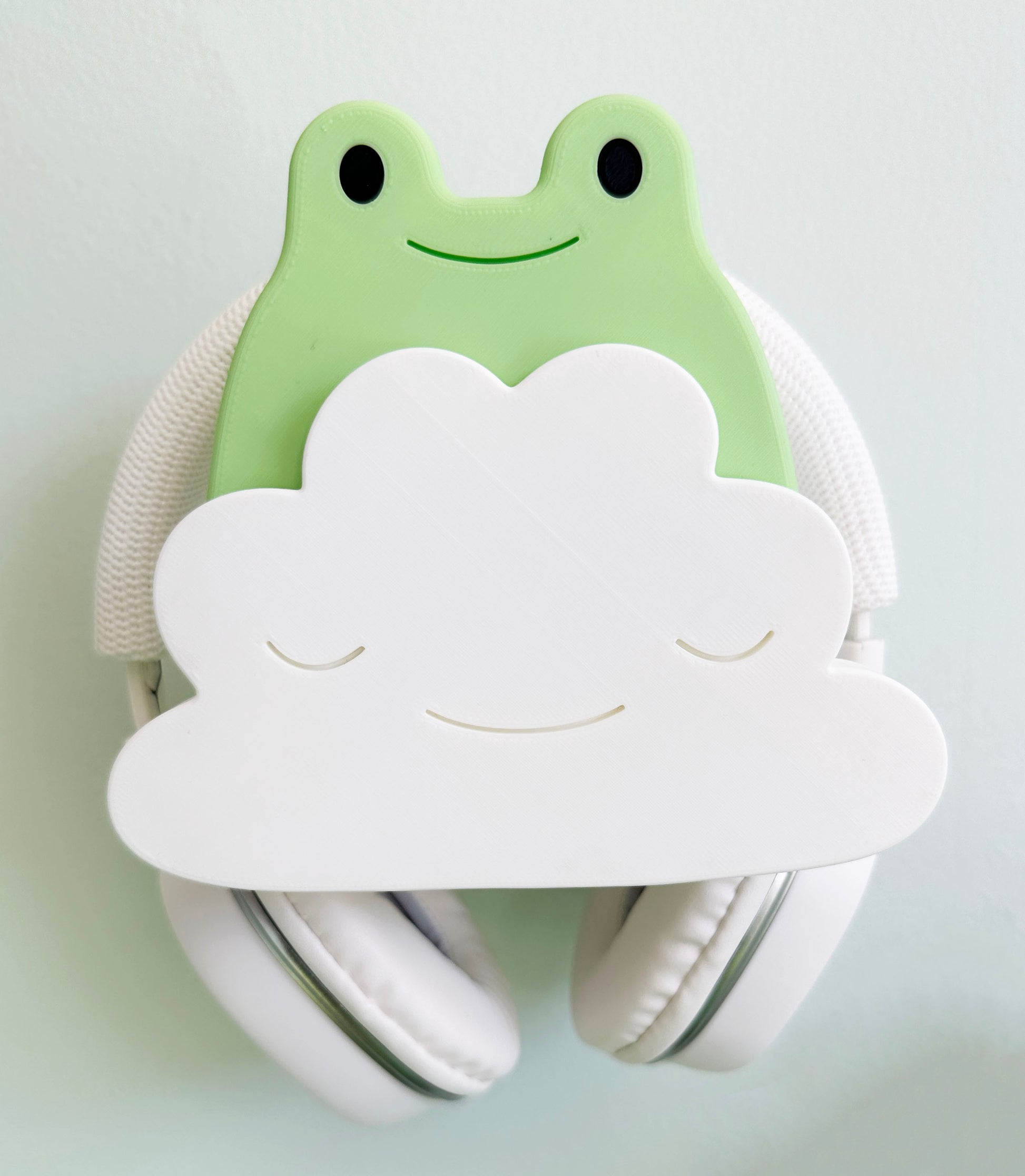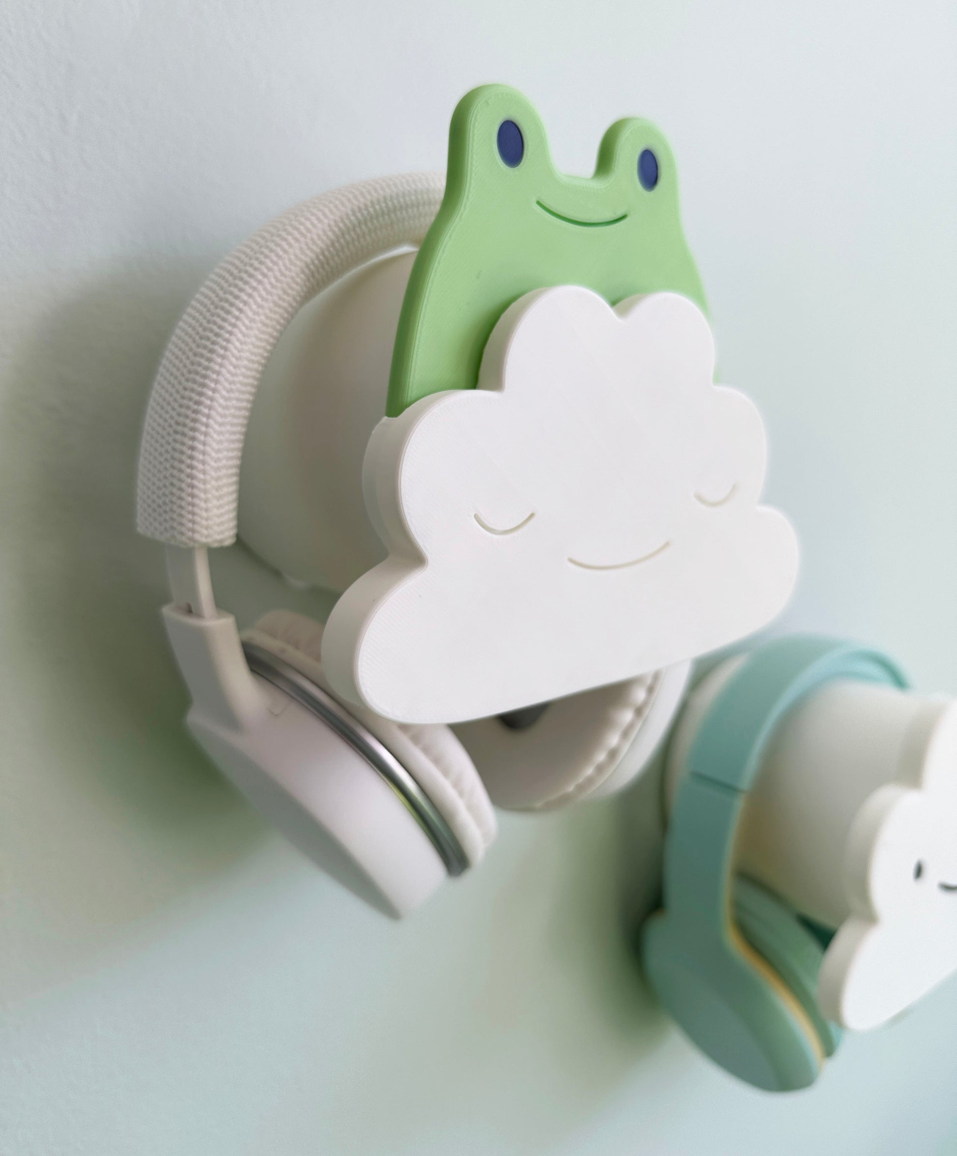 Meet Judy Frog and Nimbo the Cloud! As he floats around, he's happy to hold your headphones for you.