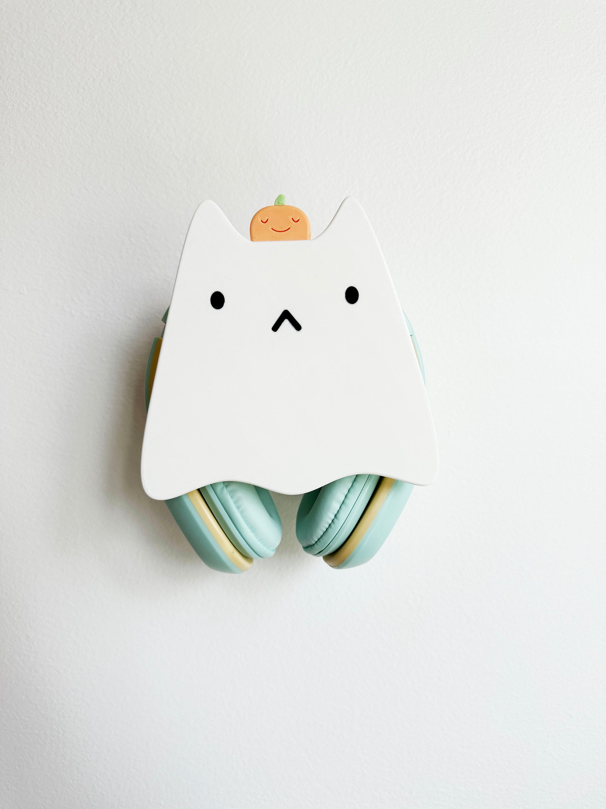 Need a spooky cute spot for your headphones? How about a ghost cat? Never lose your headphones again with this helpful cutie. Ghost Cat comes with a little pumpkin friend.