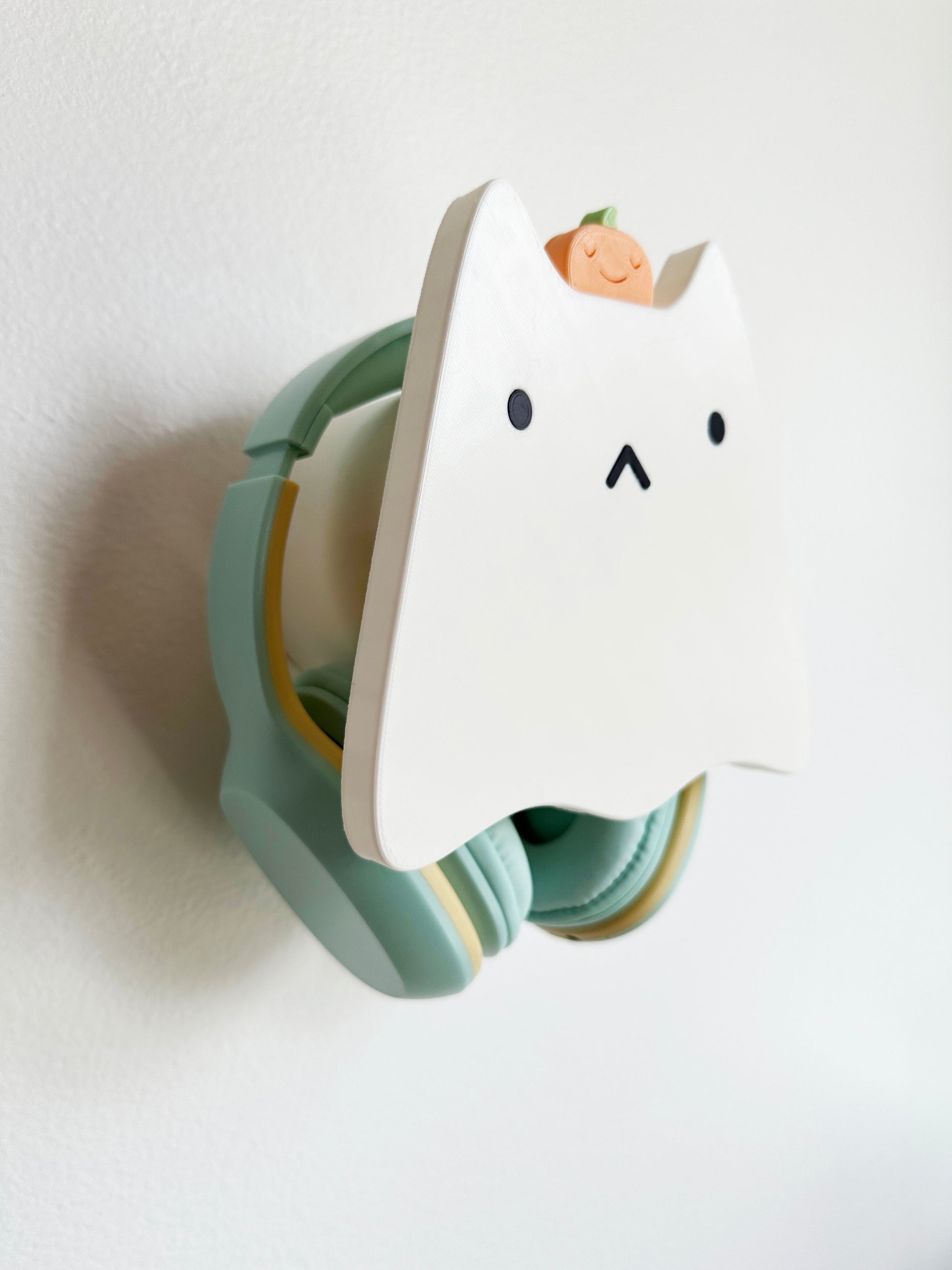 Ghost Cat Headphone Holder with Baby Pumpkin